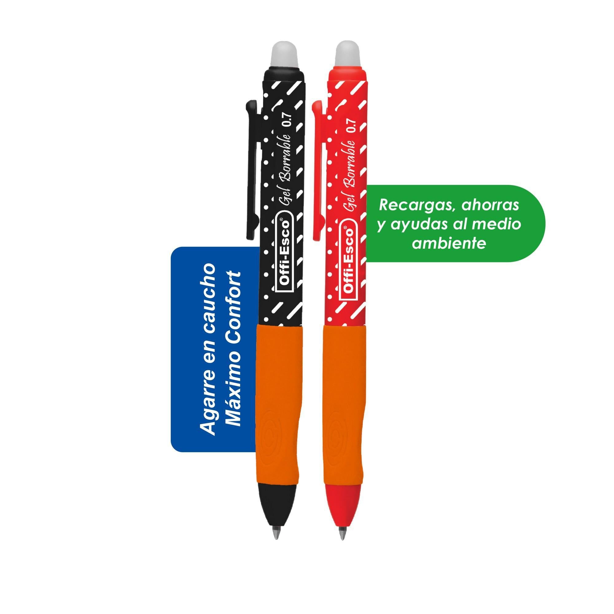 Bolígrafo gelBorrableRetráctilMina 0.7 mColor Negro y rojoCaja x 96 Displays x 12 Unds Leer más...