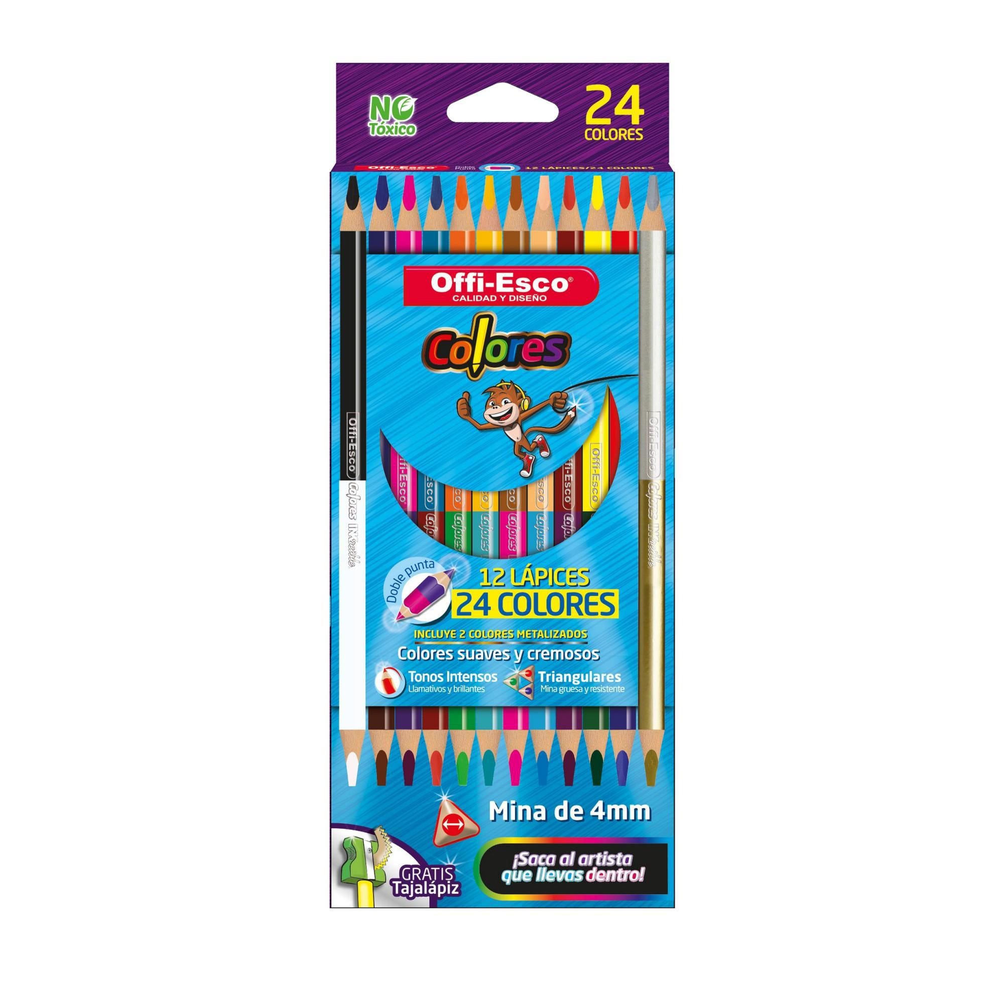 Colores TriangularesDoble PuntaIncluye 2 Colores MetalizadosColores suaves y cremososTonos Intensos, llamativos y brillantes12 lápices / 24 coloresIncluye Tajalápiz Leer más...