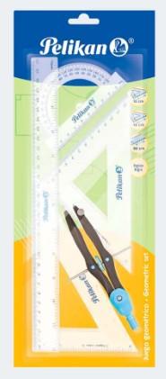 Juego Geométrico de 5 piezas de plástico rígido transparente: Brújula de precisión 2 escuadras de 13 y 18 cm1 regla... Leer más...