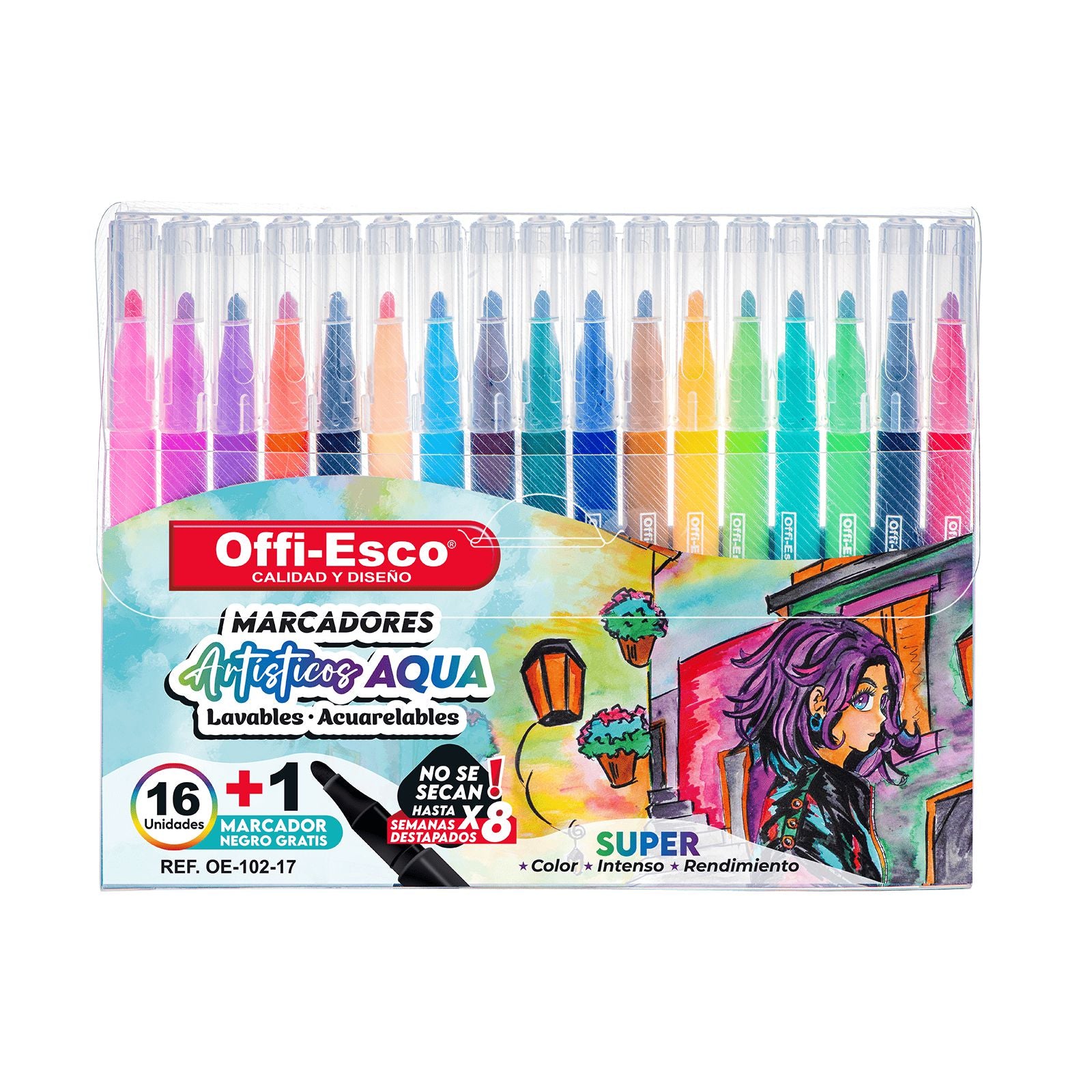 Marcador artístico AQUASon lavables y acuarelablesPunta semi-redondaMás coloresMás intensoMás rendimientoNo se secan por 8 semanas destapados Leer más...