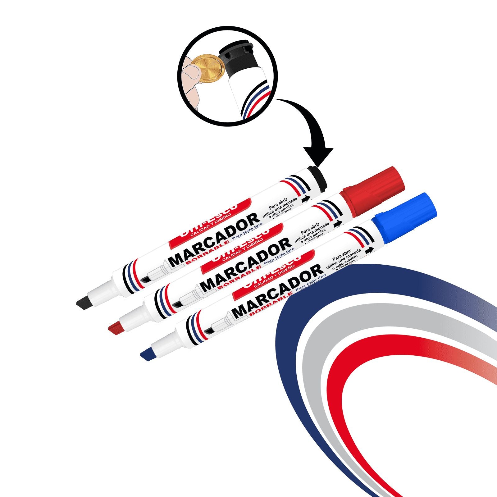 Suave escrituraPunta DuraderaMarcador RecargableColores Vivos e intensosTapa anti-asfixiaNo ToxicoBajo OlorPunta BiseladaMega Contenido de tintaCaja de 12 unidades Leer más...