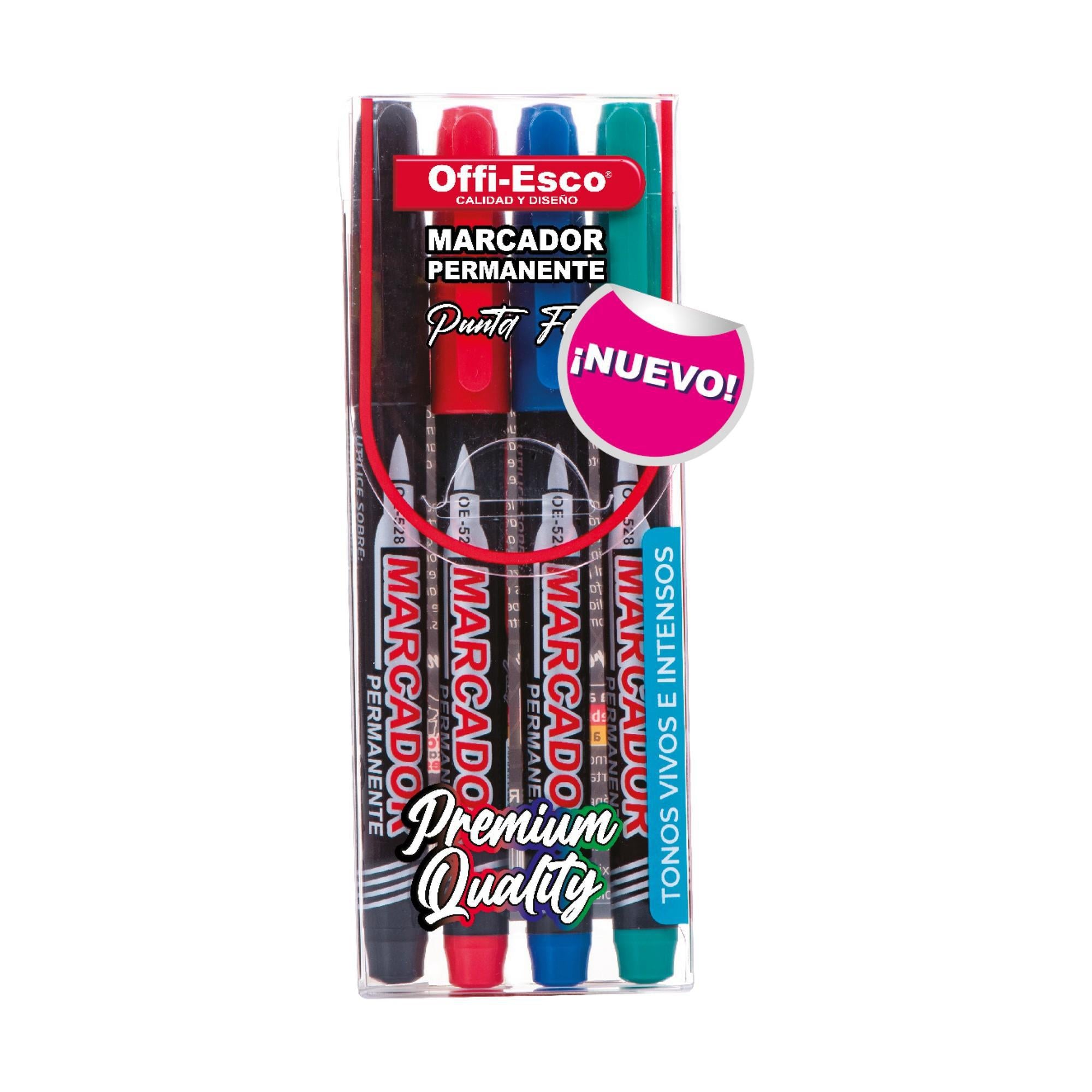 Marcador permanente punta finaEstuche por 4 unidadesMarca plástico, vidrio, Cerámica, caucho, cuero, vasos de Cartón y tela Leer más...