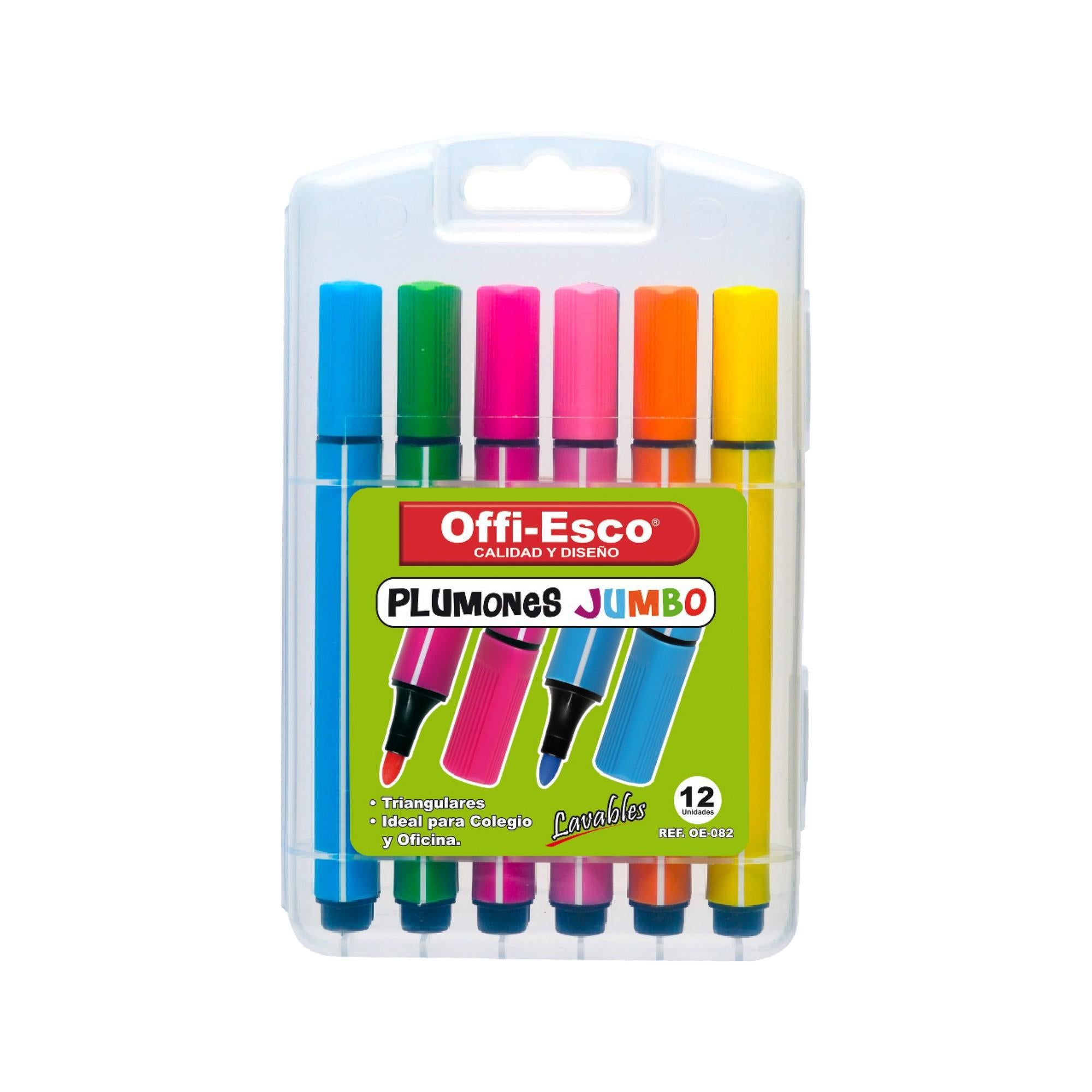 Plumones JUMBO lavables x 12 Unds.TriangularesIdeal para colegio y oficina Leer más...